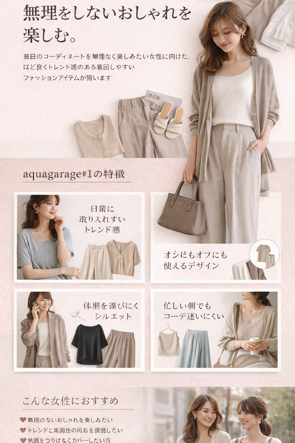 aquagarage#1(アクアガレージ)は、毎日のコーディネートを無理なく楽しみたい女性に向けた