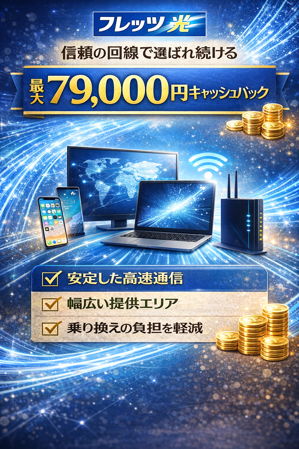 【フレッツ光】安心と信頼の光回線|最大79,000円キャッシュバック