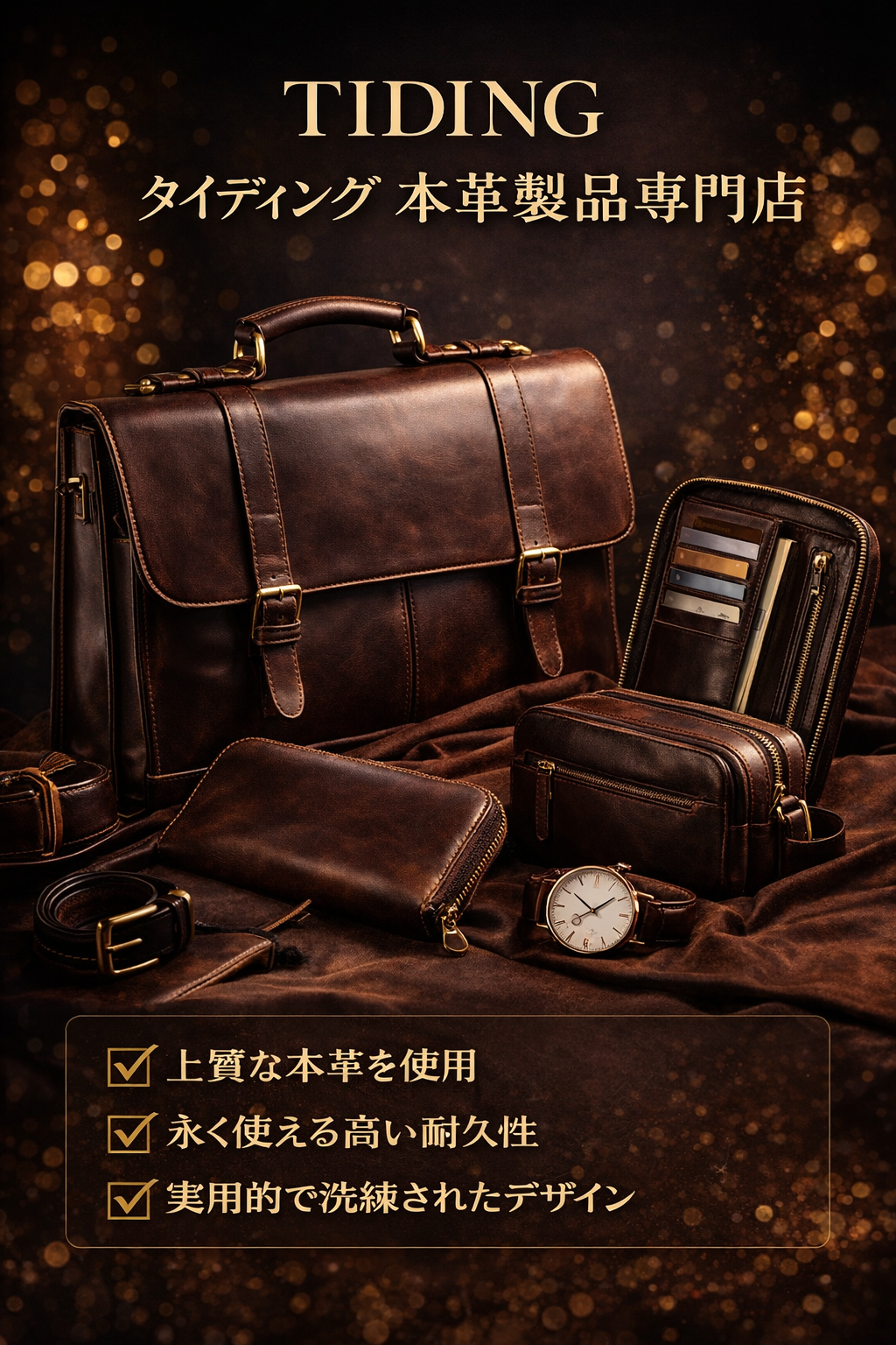 長く使える上質な革製品を探している方に注目されているのが、TIDING(タイディング)本革製品専門店です。バッグや財布をはじめとしたレザーアイテムを中心に、素材の質感、実用性、そして手に取りやすい価格帯のバランスが魅力のショップとして、多くの支持を集めています。毎日使うものだからこそ、本物の革ならではの風合いと耐久性を求めたい、そんなニーズに応えてくれるラインアップがそろっています。