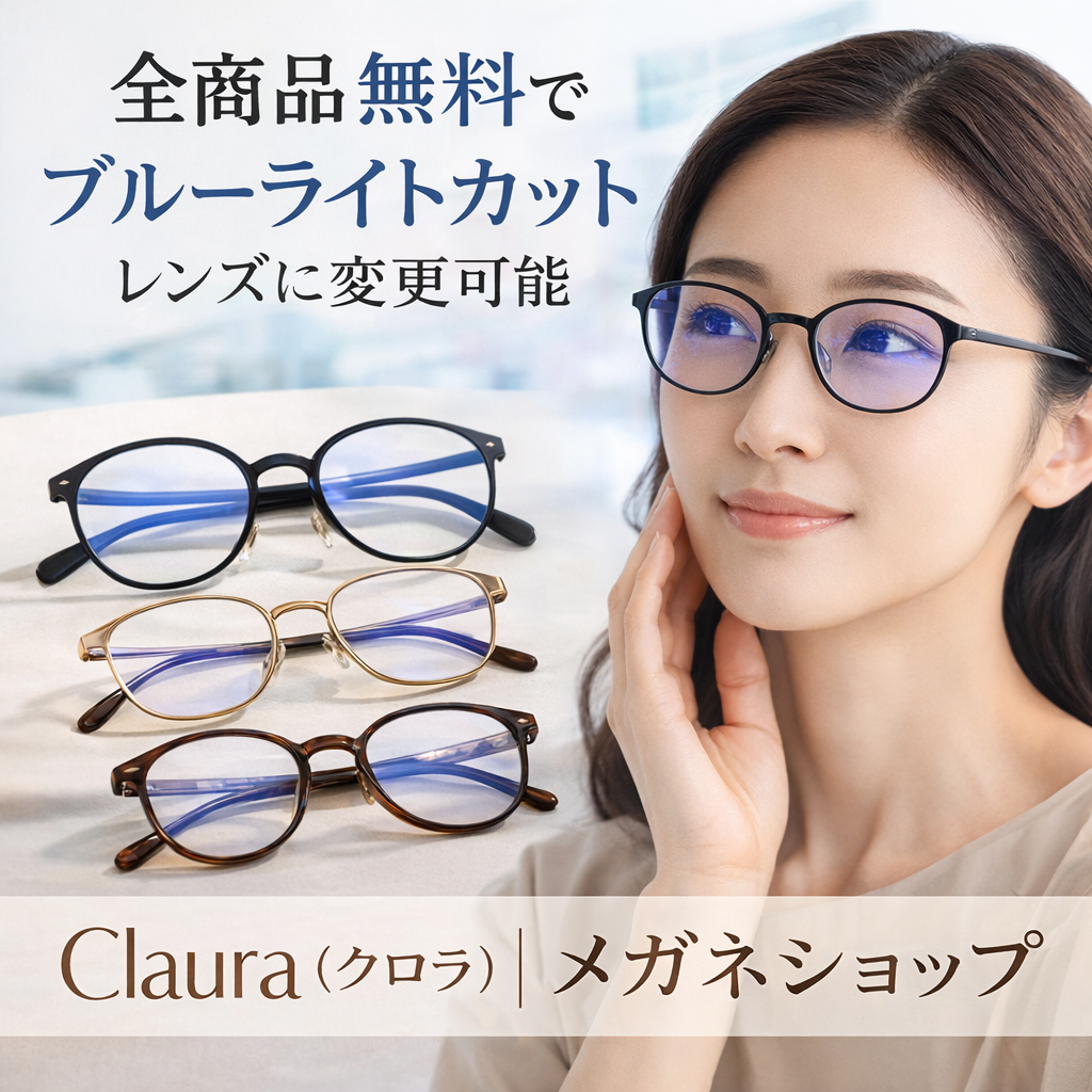 Clauraでは、追加料金を気にせずブルーライトカットレンズを選択できるため、