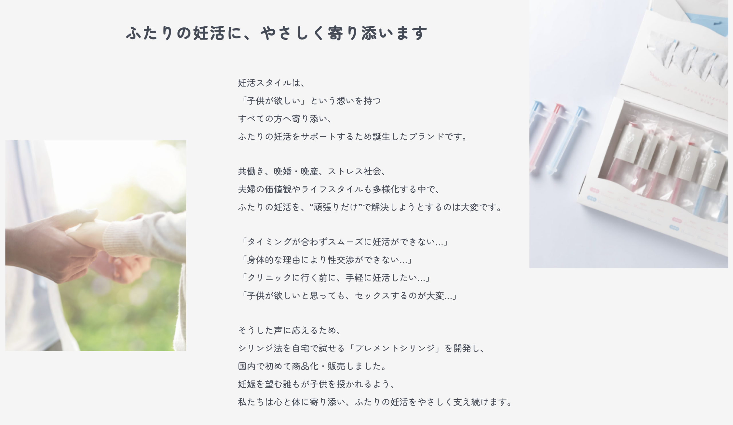 2人のペースを大切にしながら、一歩ずつ進める妊活。その選択肢のひとつとして、プレメントシリンジを検討してみてはいかがでしょうか。