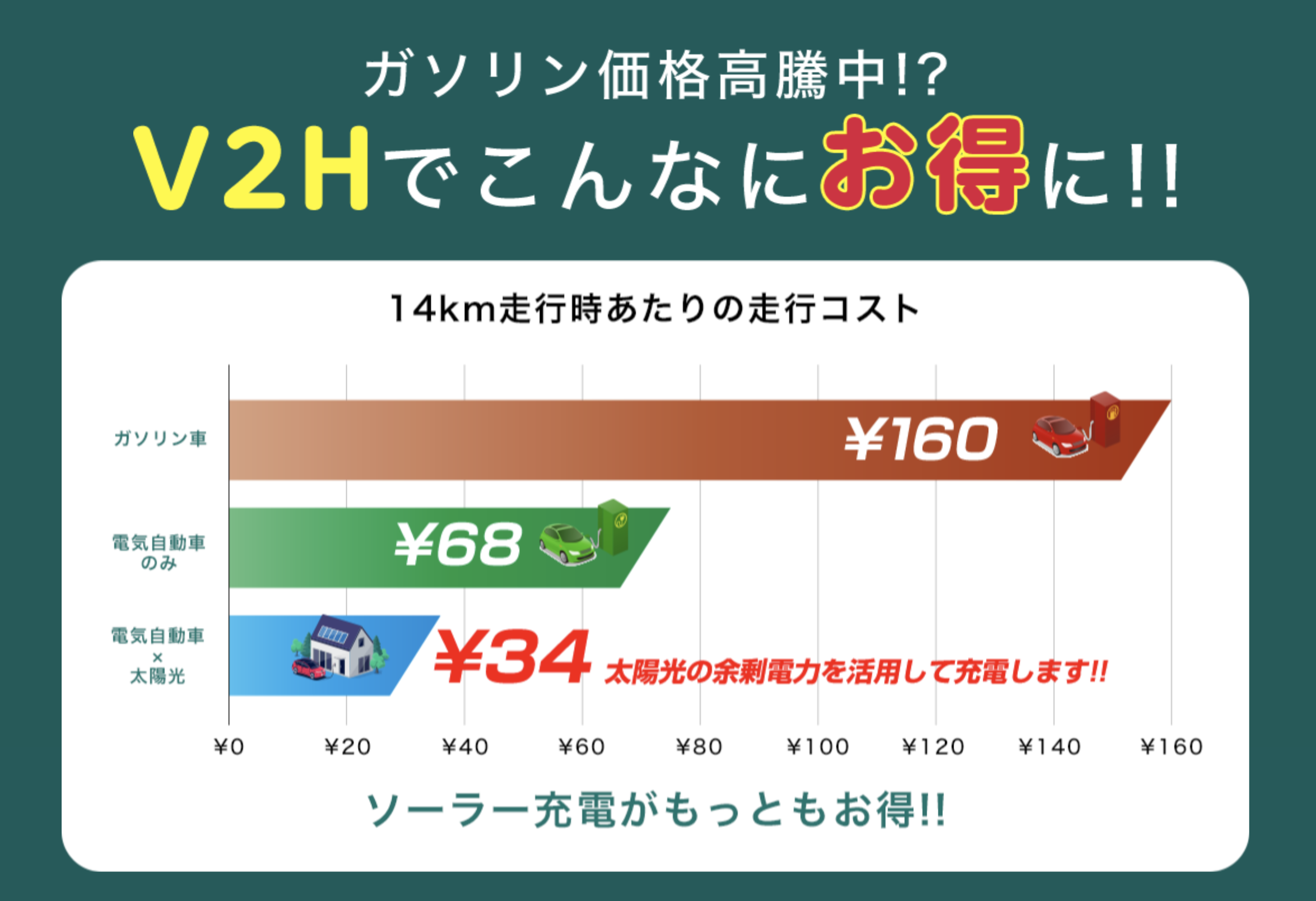 | 項目 | V2H | 家庭用蓄電池 | 太陽光発電 |