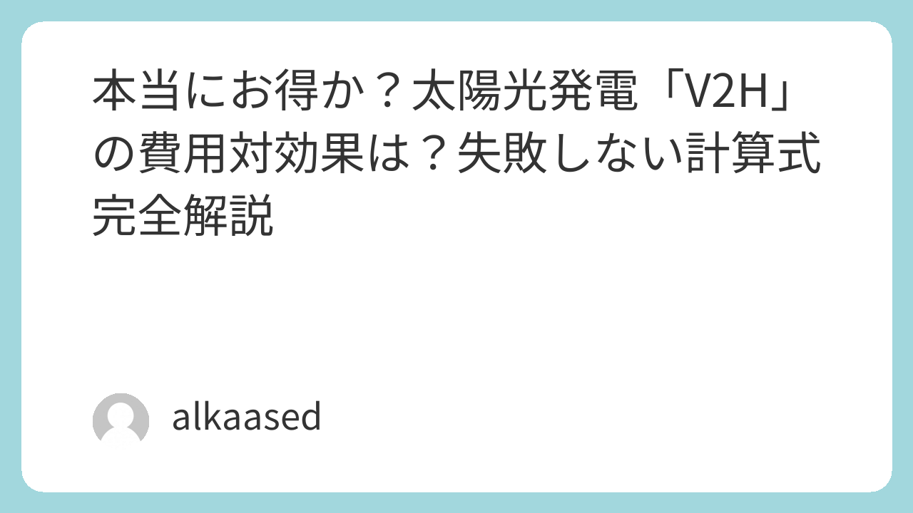 この記事ではV2Hの基本的な仕組みや初期費用、補助金、維持費の考え方を丁寧に示し、具体的な計算式と試算例を通じて「本当にお得か」を読者自身で判断できるようにします。