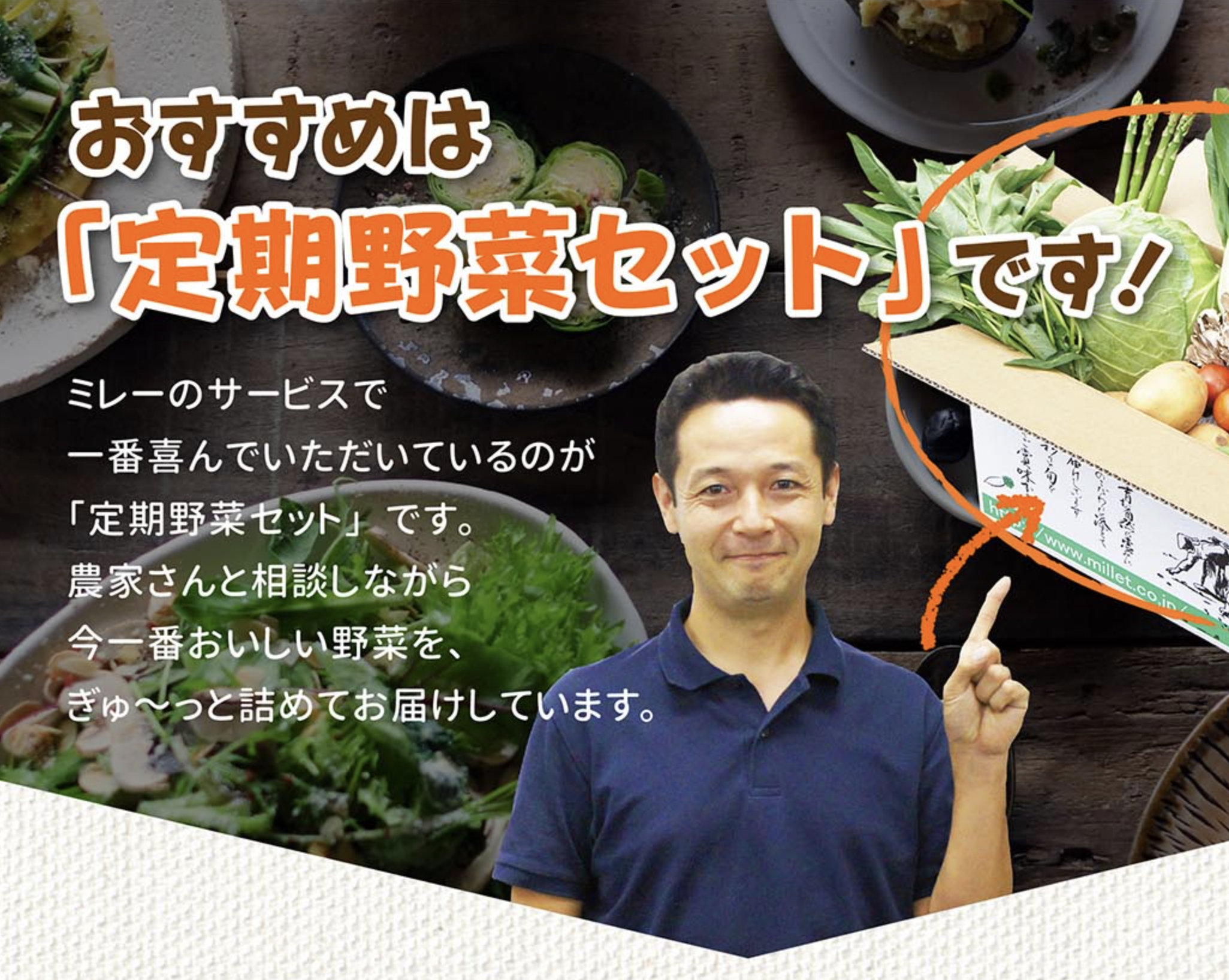 無農薬野菜の宅配サービス「ミレー」のお試しセットを検討している方向けに書かれています。