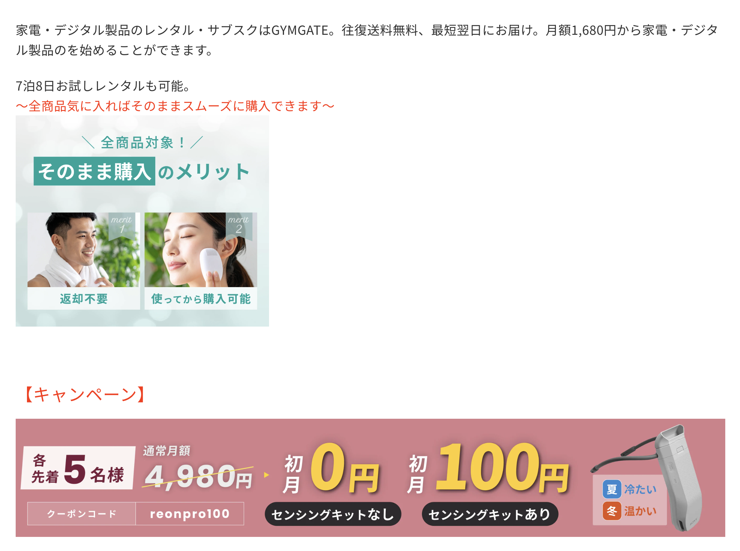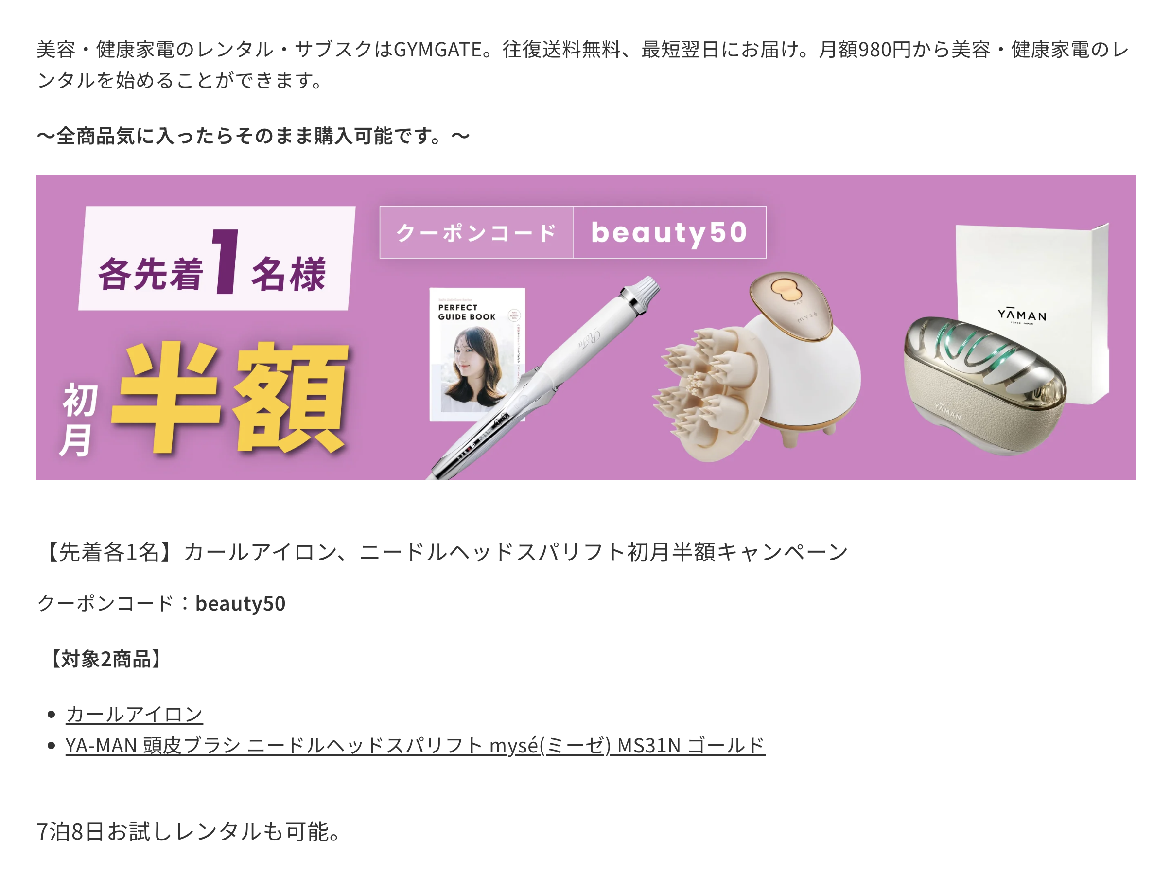 高機能ドライヤーや美顔器、脱毛器などサロン級の家電を自宅で試せるため、合うか合わないかを見極めるのに最適です。