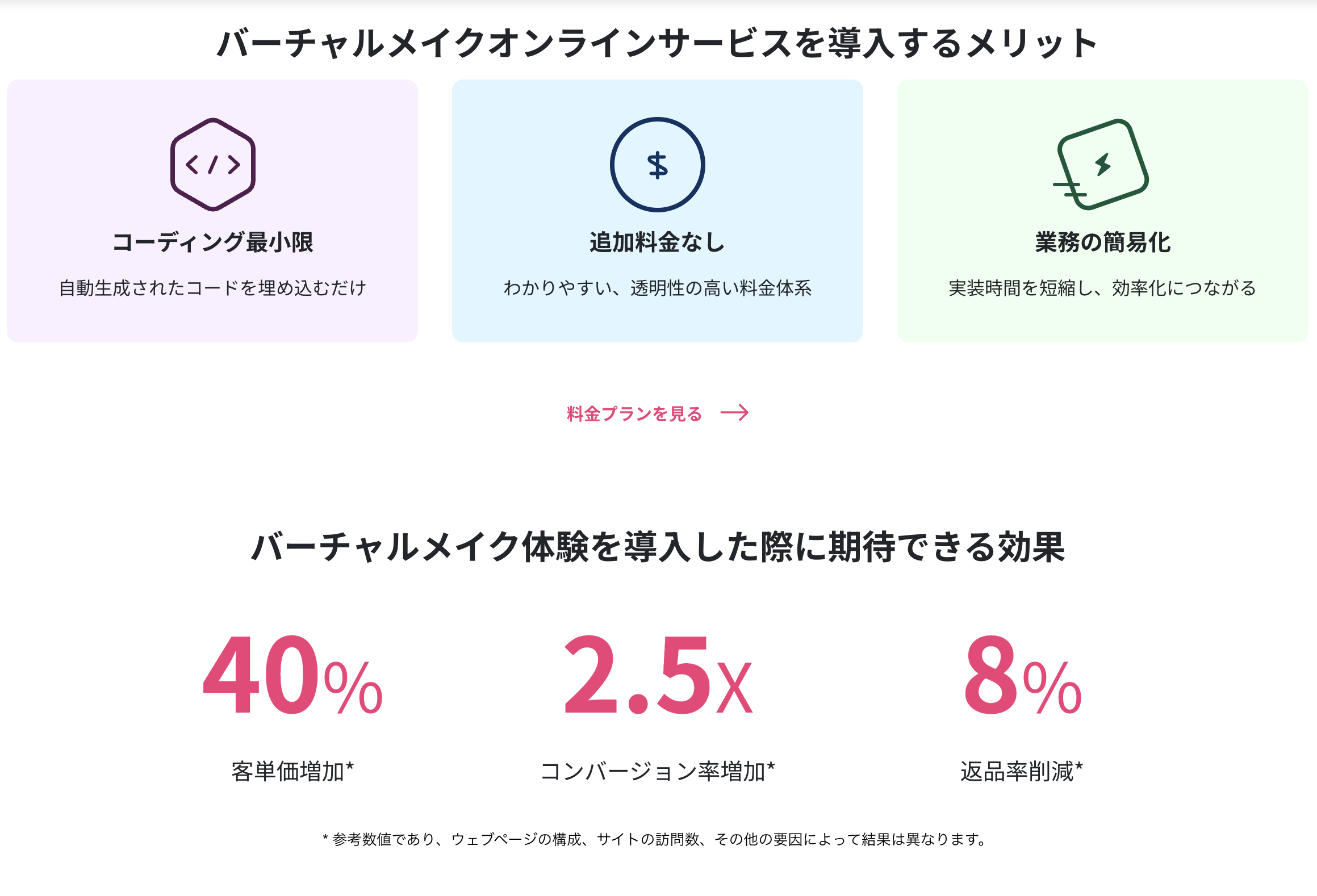 ある事例では、商品ページにバーチャルメイクウィジェットを導入した結果、商品ページの滞在時間が延び、CVRが数%ポイント向上した報告があります。