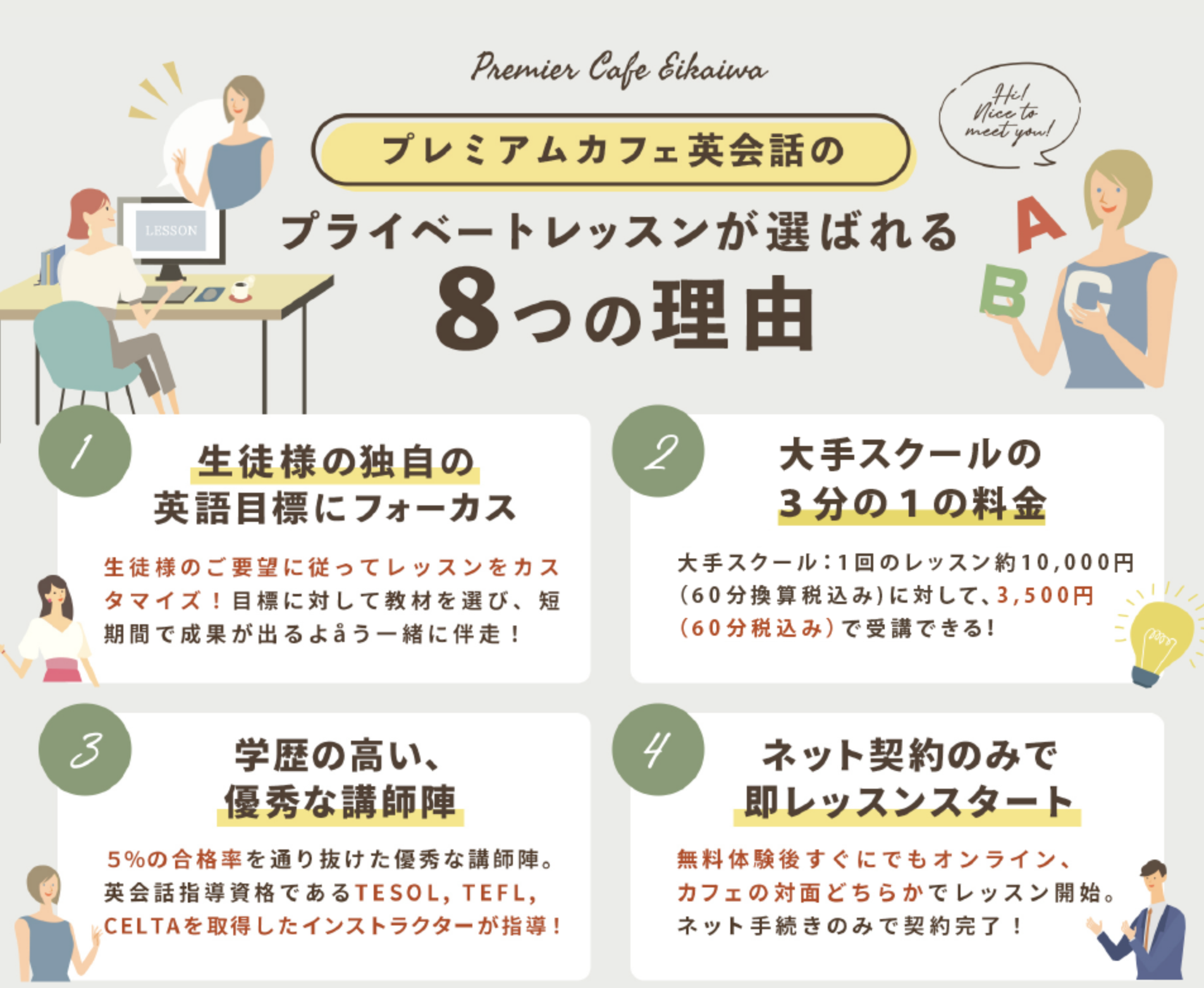カフェ英会話プライベートレッスンの特徴